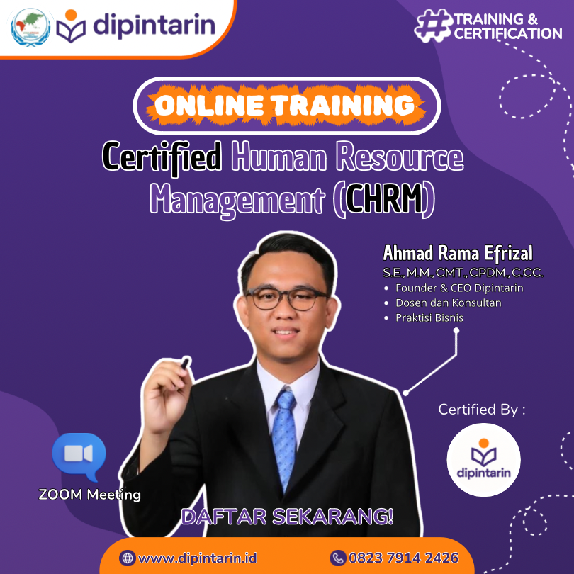 (Diberikan kepada peserta yang telah menyelesaikan seluruh rangkaian pelatihan Certified Human Resource Management (CHRM) bersama Ahmad Rama Efrizal, S.E., M.M., CPDM., CMT., C.CC.