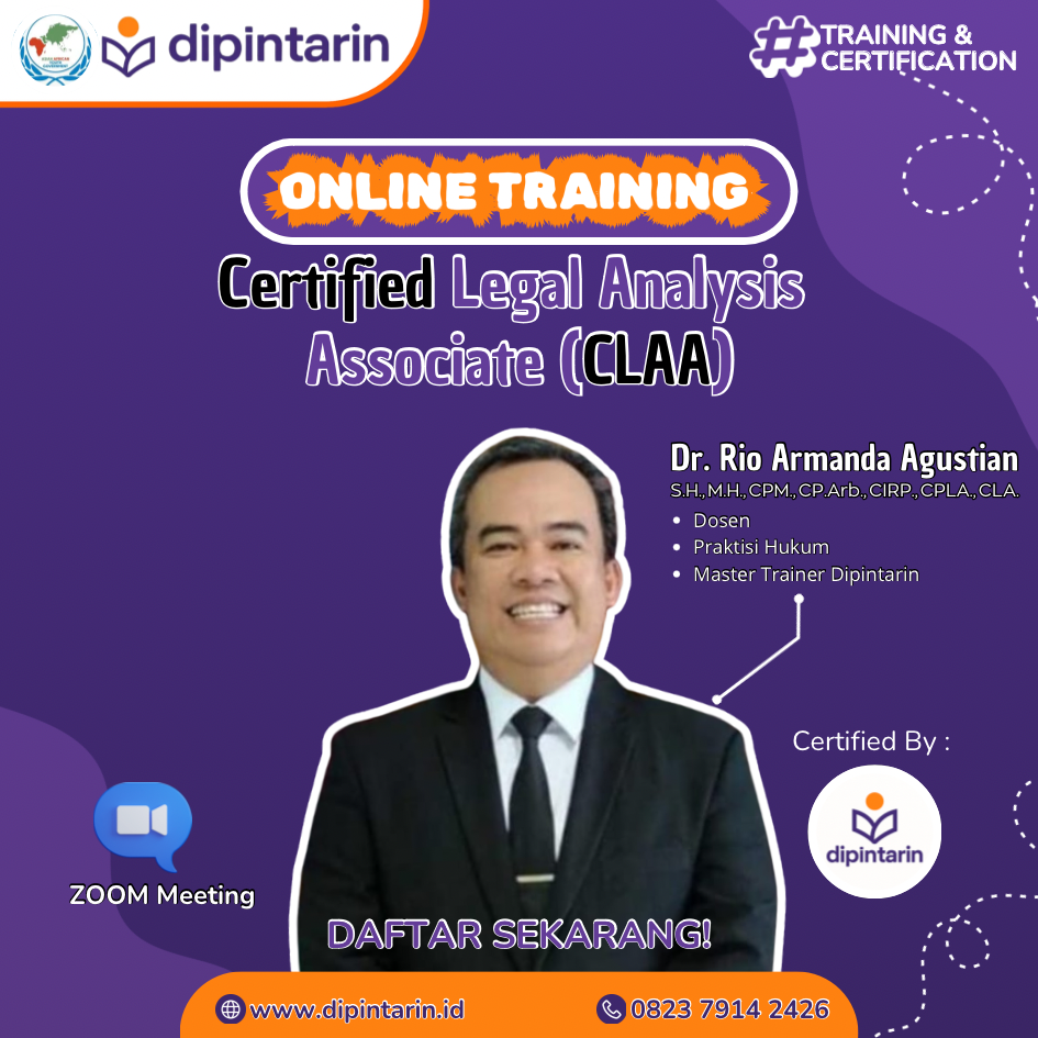Trainer : Dr. Rio Armanda Agustian, S.H., M.H., CPM., CP.Arb., CIRP., CPLA., CLA.